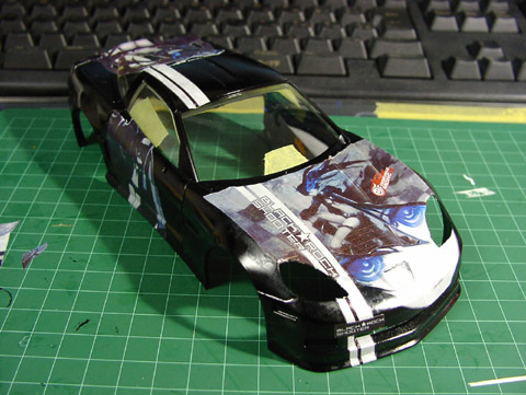 車体に仮貼り付け。サイズと位置を確認してみる。
