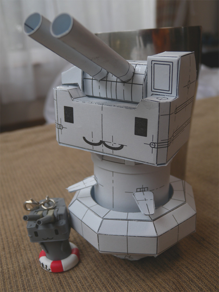 連装砲ちゃん板金製作用紙試作品出来。 サイズは14cm位。手足と浮き輪もついたよ。 夏コミでペーパークラフト版出します。